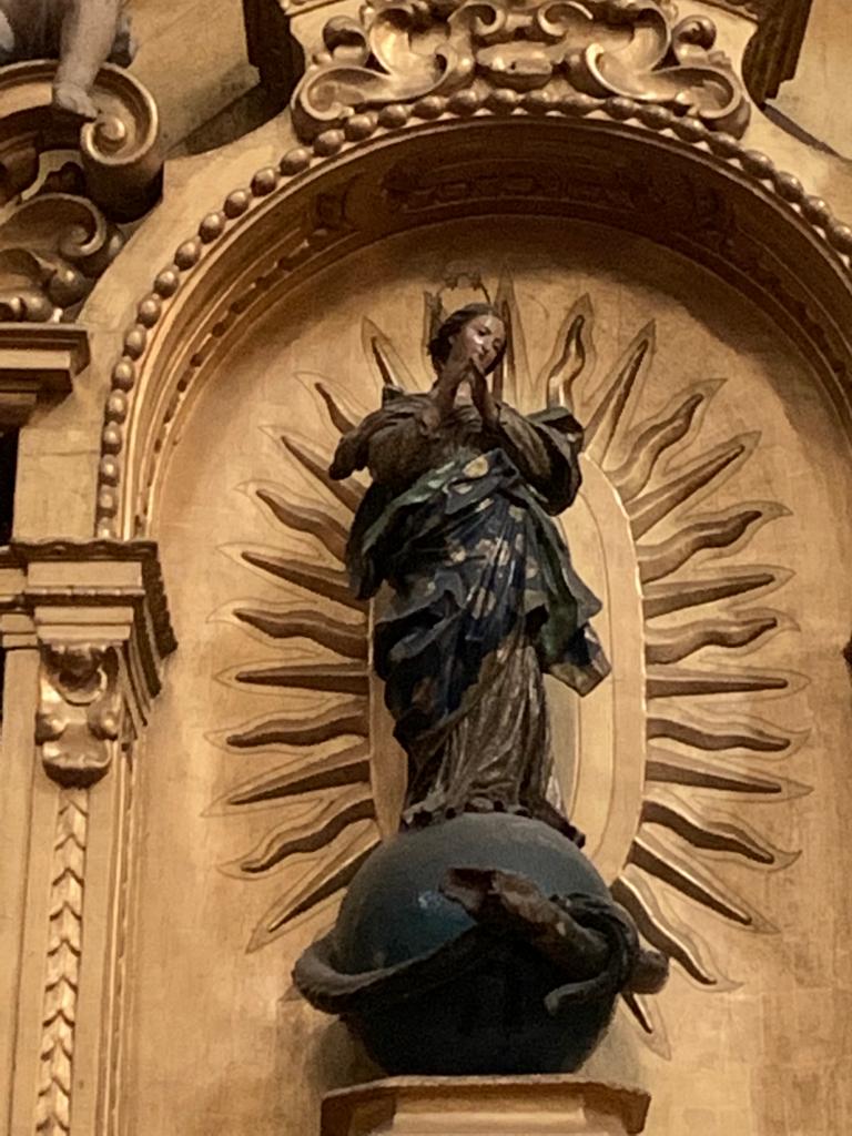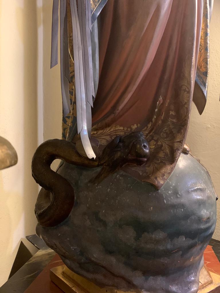 Esta relación de la muchacha/princesa con el dragón me recuerda a esas imágenes de la Inmaculada Concepción que muestran, a sus pies, una bola negra, una media luna hacia arriba o hacia abajo y, también, una serpiente o dragón, a veces con el pie de la virgen, ostensiblemente, sobre la bestia. ¿Os habéis fijado?