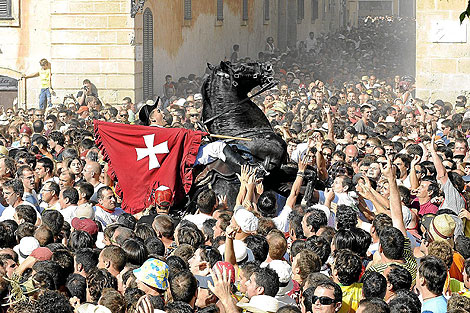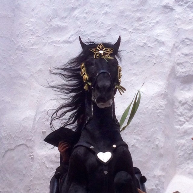 Si preguntáis, os dirán que son payeses los que montan esos magníficos caballos negros de origen bereber y raza menorquina, y también los de otros colores y razas… Y es verdad, los cavallers son payeses, han de serlo, jóvenes y viejos. También os dirán que siempre lo han sido, pero eso ya no es verdad. Cuando la fiesta empezó, en el 1287, no eran payeses armados los que salían extramuros a caballo en la víspera del día de Sant Joan.